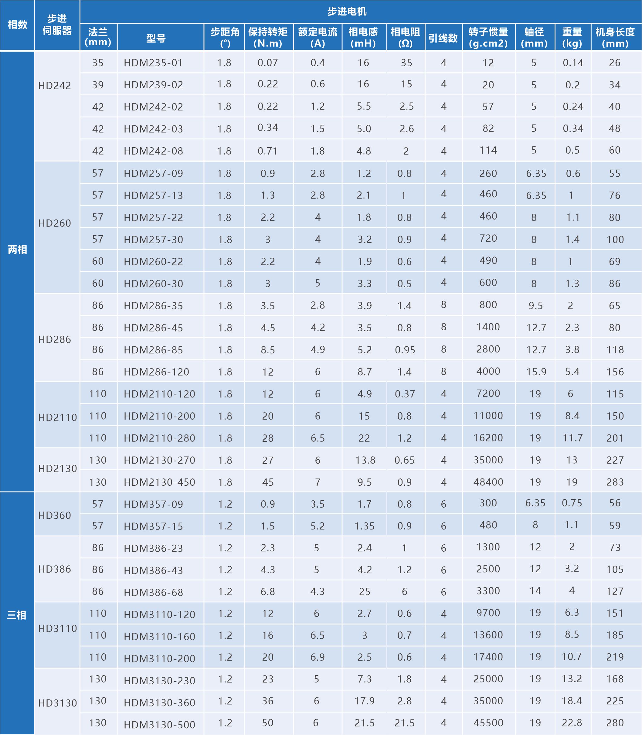 HDM260 開環(huán)步進(jìn)電機(jī)HD系列步進(jìn),包括HD系列驅(qū)動(dòng)器、HDM系列電機(jī),是我司基于自動(dòng)化行業(yè)的安全穩(wěn)定可靠、精準(zhǔn)高效智能、高性價(jià)比、體積緊湊等多方面市場(chǎng)需求,針對(duì)性推出的單相、三相步進(jìn)系統(tǒng),完美驅(qū)動(dòng)從35mm到130mm機(jī)座的全系列的兩相、三相高品質(zhì)步進(jìn)電機(jī)。 HD系列步進(jìn),具有更高可靠、更大力矩、更高精度、更低發(fā)熱、更平穩(wěn)性等特點(diǎn),廣泛應(yīng)用于電子、五金、木工、雕刻、玻璃、激光、噴繪、包裝、紡織服裝等自動(dòng)化設(shè)備和生產(chǎn)線。