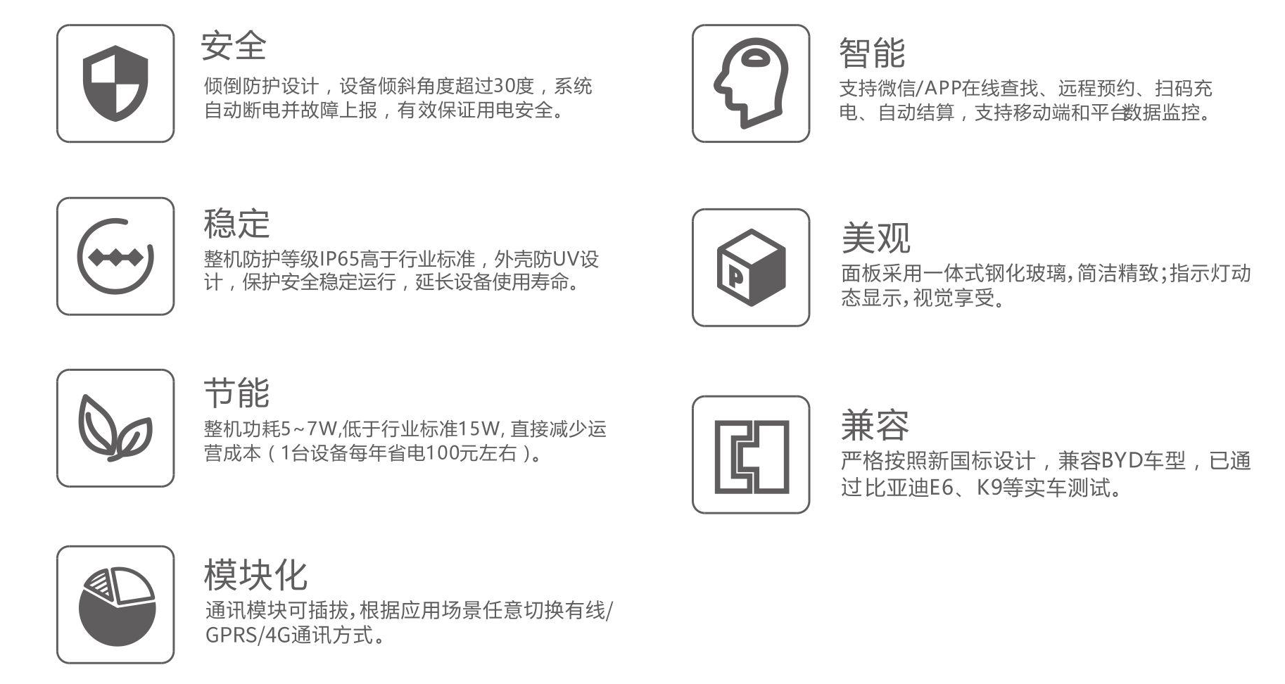 三相交流樁主要提供給BYD E5\E6\K9等具備三相車載電機的乘用車與客車使用。充電站集人機交互、充電控制、安全防護、計量計費、數(shù)據(jù)通訊功能與一體,安裝方便、部署快捷、性能穩(wěn)定。